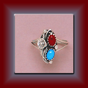 Turquoise & Coral Ring - R10