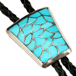 Inlaid Sterling Silver Bola. It is 1 1/2" wide at the top, 1" wide at the bottom and 1 3/4" long.