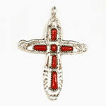 Sterling Silver Cross with Mediterranean Coral set in it. It is 2" long. CR09