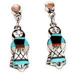 inlaid with Black Onyx, Coral White Mother of Pearl and Pink Mussel Shell on the top Maiden Earrings. Please see