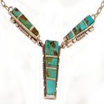 Silver inlaid with Turquoise and Lab Created Opal Necklace. Both Side Pendants are 1/2" wide at the top, 3/16"